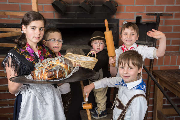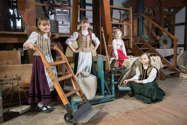 *Wechmarer Trachtenkinder in der Veit-Bach-Mühle (Foto Norbert Sander)