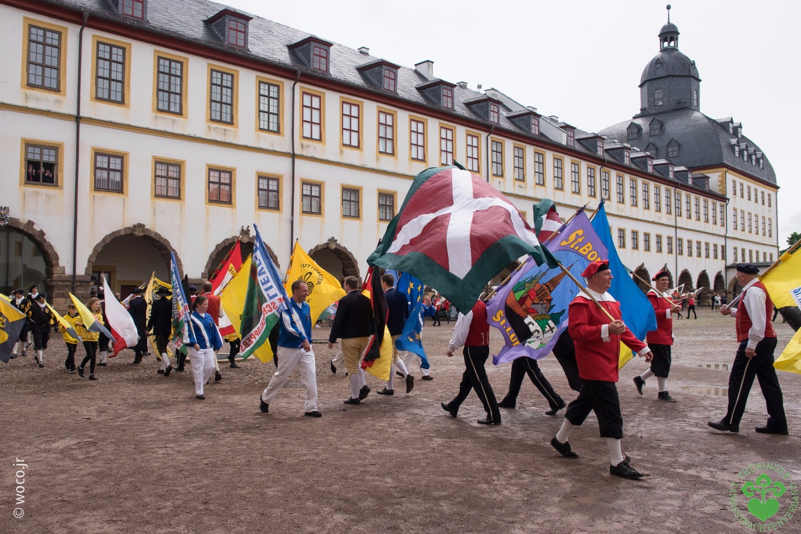 „Wir können den Wind nicht ändern, nur die Fahne in ihm schwingen“ so, oder so ähnlich klingt eine Wort von Aristoteles und wir wollen ihm nicht widersprechen, aber, es waren keine Menschen, die ihr Fähnchen nach dem Wind hängen, sondern 300 Schwingerinnen und Schwinger, die in zwanzig Gruppen aus sechs Ländern Europas zu Pfingsten 2017 für vier Tage die alte thüringische Residenz- und Hauptstadt Gotha mit ihren regionaltypischen Fahnen in wahrhaft schwungvolle Stimmung versetzten. Zum sechzehnten Male trafen sich in losen Gruppen und Vereinen aus der Schweiz, Österreich, Belgien, Dänemark, Italien und Deutschland zusammengeschlossene Gruppen, um das schöne Hobby des Fahnenschwingens zu pflegen. In Gotha ging es nicht darum, wer die Fahne am höchsten, oder die Vledder am weitesten werfen kann, „Gotha brachte Symbole“ zum Schwingen, so Christian König aus Öhringen, der maßgeblich das Zusammentreffen in Deutschland organisierte.