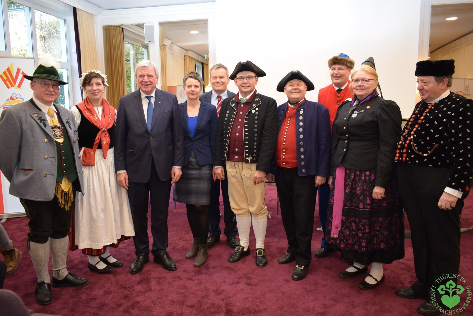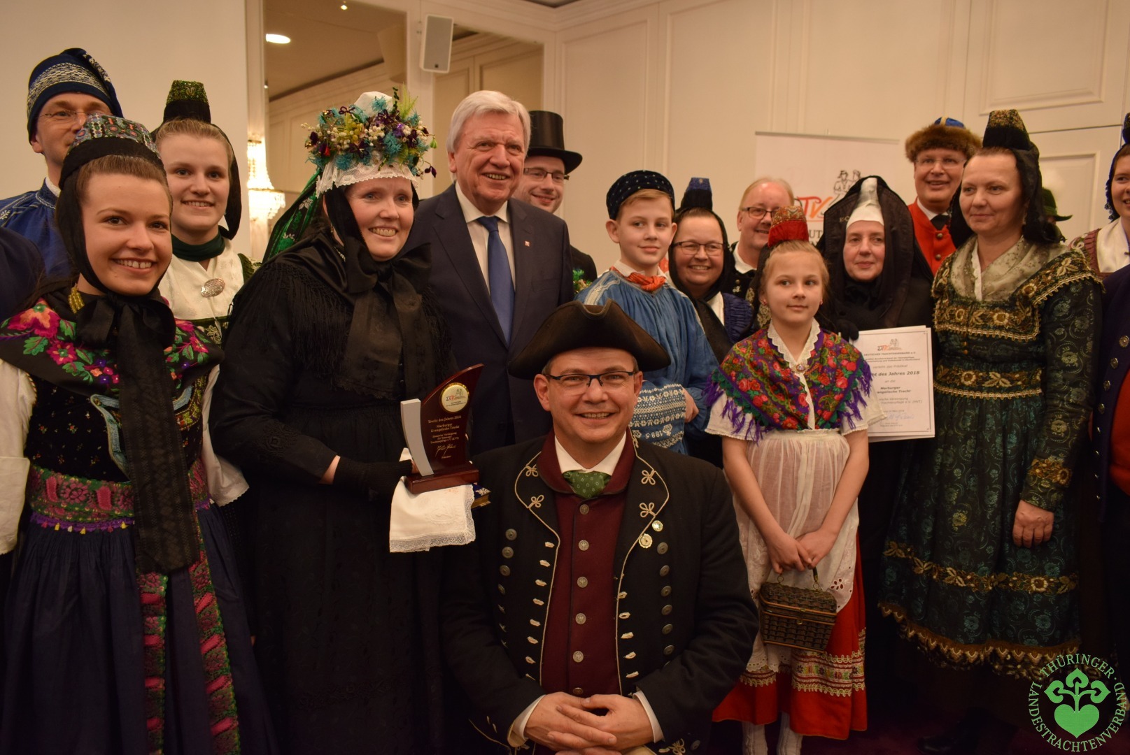 Die hessische Universitätsstadt Marburg war vom 23. bis 25. März 2018 Gastgeberstadt des Deutschen Trachtentages 2018. Mehr als einhundert Delegierte aus allen deutschen Landesverbänden trafen sich auf Einladung der Hessischen Vereinigung für Tanz- und Trachtenpflege in der schönen Kulisse der alten Landgrafenstadt. Der Thüringer Landestrachtenverband war mit 14 Delegierten aus Friedrichswerth, Ruhla (Tracht des Jahres 2007), Altenburg (Tracht des Jahres 2011), Wechmar und Seebergen vertreten. Höhepunkt der dreitägigen Versammlung war der Besuch des Hessischen Ministerpräsidenten Volker Bouffier, der begleitet von der Landrätin des Landkreises Marburg- Biedenkopf Kirsten Fründt und des Oberbürgermeisters der Stadt Marburg Dr. Volker Spies an der Bundesversammlung teilnahm.