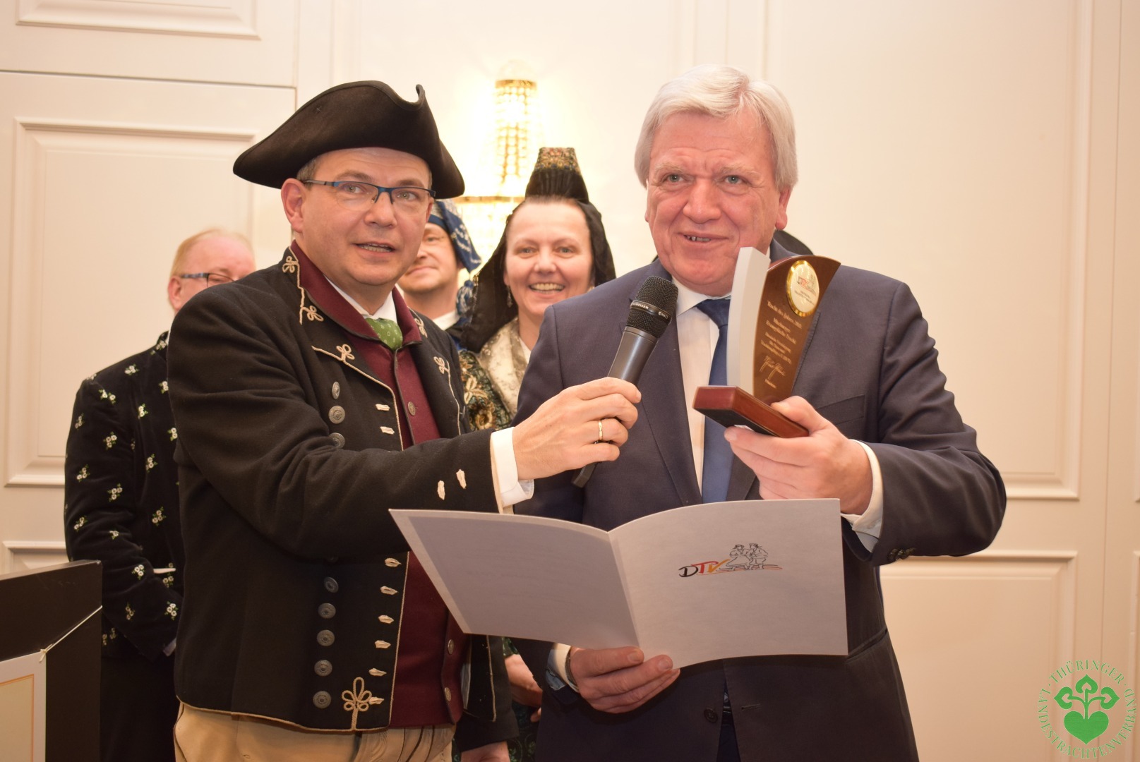 In einer sehr emotionalen Rede wandte sich Hessens Ministerpräsident an die Delegierten und ihren Präsidenten Knut Kreuch, Oberbürgermeister der Stadt Gotha. Er erinnerte zuerst an seinen ersten Besuch in Gotha, am 3. Januar 1990. Dabei bewies der Landeschef eine sagenhafte Erinnerungsgabe, die ihn vom atemberaubenden Schloss Friedenstein, über die kaputten Häuser des Hauptmarktes bis zur Wohngebietsgaststätte „Freundschaft“ und zum „Klub der Kulturschaffenden“ führte. Als Kreuch ihm sagte, dass er es war, der ihm damals im Klub die Tür öffnete und die Veranstaltung betreute, sprudelten die Gothaer Erinnerungen noch lebendiger. In einer anschließend bemerkenswerten Rede hob der hessische Ministerpräsident die Werte von Heimat und Tracht sowie bürgerschaftlichem Engagement hervor.
