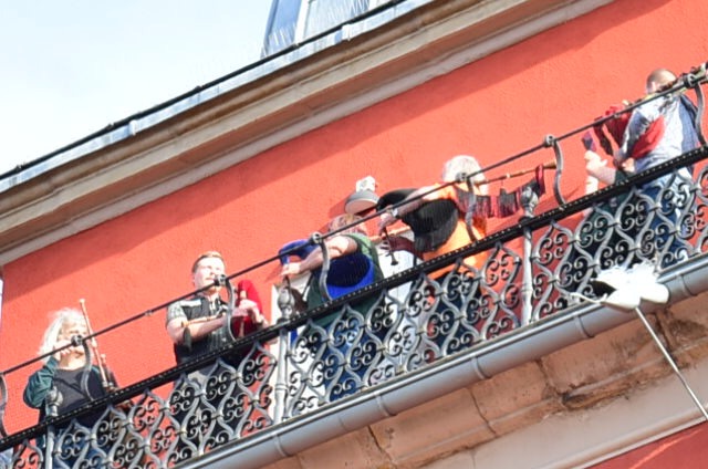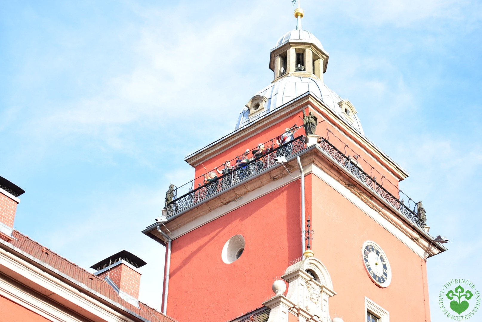 Am Samstag erlebten die Gothaer eine wahre Premiere, als die „Wechmarer Mühlenpfeiffer“ zweimal den Dudelsack vom Rathausturm erklingen ließen.