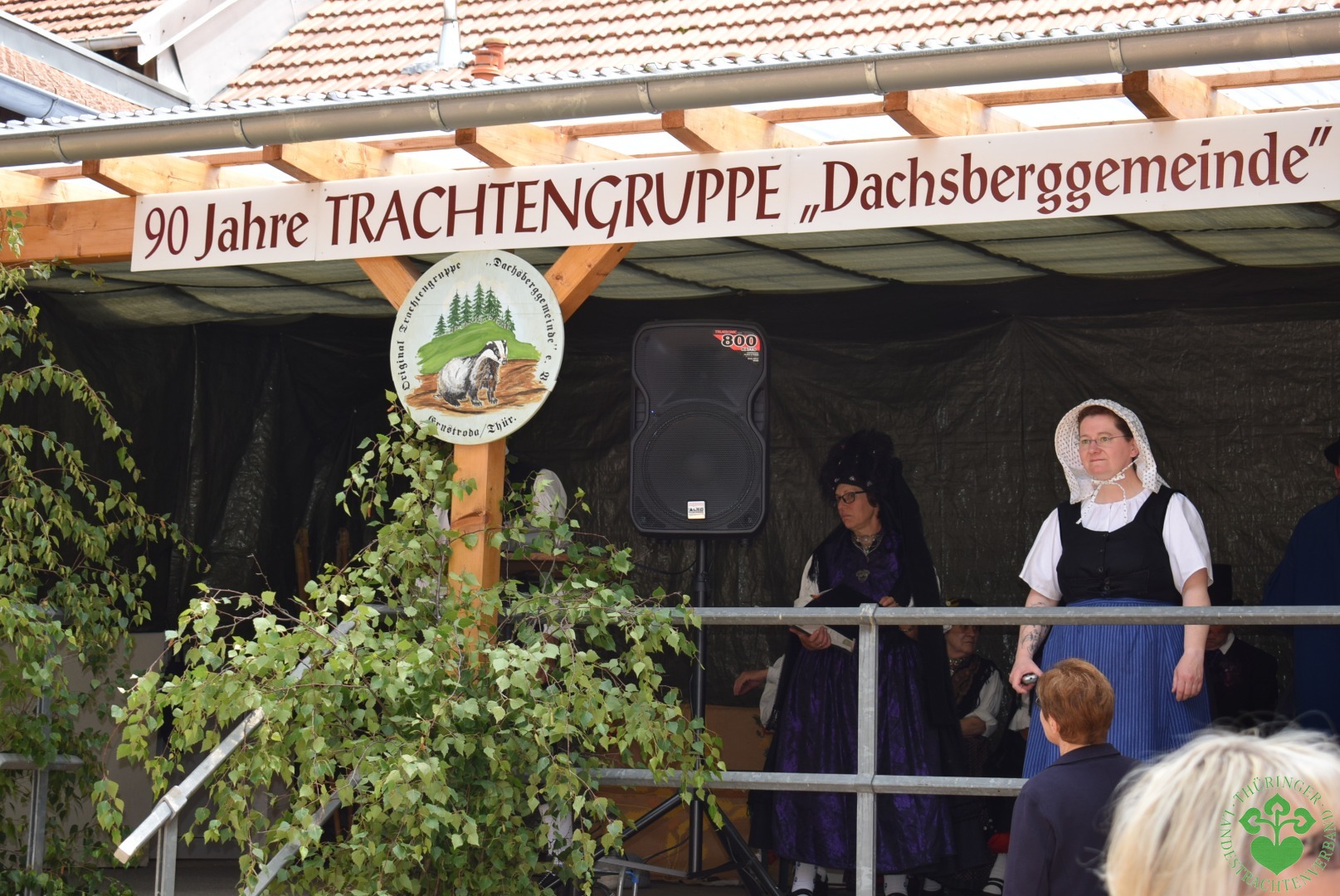 Dagmar Klopfleisch, die Vereinsvorsitzende, ließ in ihrer Rede die lange Geschichte der Dachsberggemeinde Revue passieren und wünschte sich vor allem wieder den einen oder anderen gemeinsamen Tanz. Heute wie einst erntet die Dachsberggemeinde bewunderte Blicke für ihre sorgsam gearbeiteten Trachten. So auch zur Geburtstagsfeier. In den 1990er Jahren waren die Ernstrodaer Hochzeitszüge im Fernsehen und in der Presse oft vertreten. Sogar im kroatischen Zagreb präsentierten die Ernstrodaer damals die tollen Gewänder. Thüringen international!