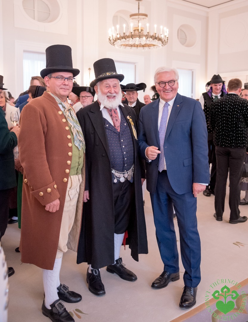 Bundespräsident Frank-Walter Steinmeier empfängt den Deutschen Trachtenverband anlässlich seines 90. Jubiläums! Ja, auch Thüringer Trachtenfreunde werden in die Hauptstadt Berlin reisen. Aufregung und Vorfreude bereits vor langer Zeit, als der Termin bekannt wurde. Schwer findet sich ein Nachmittag im Kalender des Bundespräsidenten, aber selbst für den letzten Dienstag des Oktobers 2019 füllt sich die Delegation schnell.
