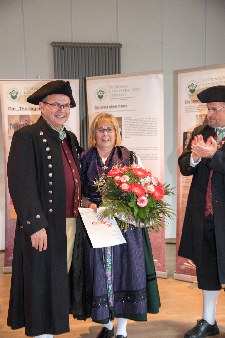 Ein ganz großer Dank gilt unserem Thüringer Trachtenpaar Carolin und Danilo aus Ponitz, die zwei Jahre lang unseren Landesverband auf den unterschiedlichsten Themenfeldern in sehr würdiger Form vertreten haben. Ihr Verein hat beide vorbildlich unterstützt, hat Transporte organisiert, Freizeiten geschaffen und den jungen Leuten somit Gestaltungsraum gegeben. Beide sind nun in Beruf und Studium und wir wünschen Ihnen sie mögen der Trachtensache ewig verbunden bleiben.