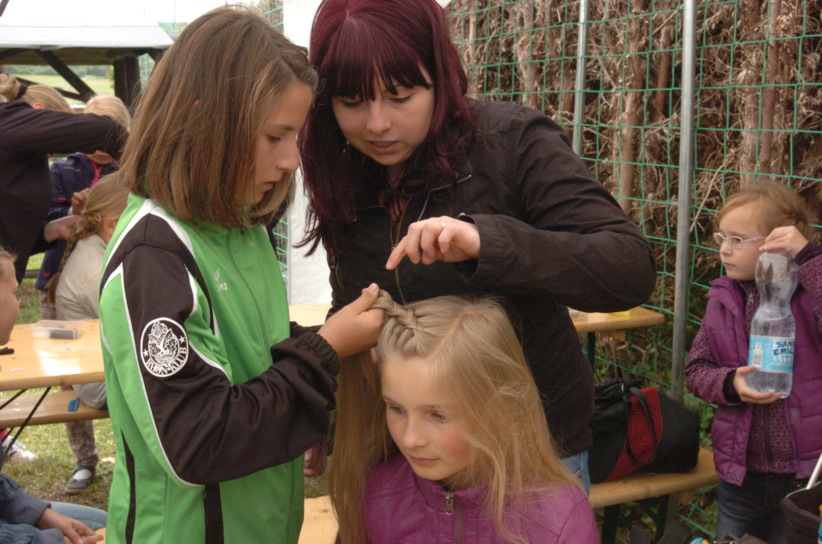 Die Kinder konnten von den Angeboten gar nicht genug bekommen. Bei den Mädels stand der Kurs zum historischen Haareflechten hoch in der Gunst. Es wurden Rhönschäfchen gefilzt und Peitschen hergestellt. Das Specksteinschnitzen fand viele Liebhaber. Fahnenschwingen und Instrumentenbau wurden immens nachgefragt. Dazu kamen die Seminare zum Spinnen, Sticken und Filzen von Schmuck und Trachtenteilen. Traditionelles Rhöner Brauchtum faszinierte beim Holzschnitzen. „Viele Kinder kennen lediglich den Rasenmäher, deshalb wurde die Rhöner Heumahd ins Seminarprogramm integriert.„Dazu haben wir extra kleine Sensen herstellen lassen.“, erläutert Frank Hößel.Am Abend fesselte der Heimat- und Geschichtsverein aus Kaltennordheim die Aufmerksamkeit großer und kleiner Leute. Gemeinsam saß man um das Sonnenwendfeuer zusammen und erlebte historische Bräuche aus der Rhön hautnah, die sich um den Johannistag und die kürzesten Nächte des Jahres drehen. In dieser Zeit sind sich Himmel und Erde ganz besonders nah. So manches Magische passiert. Beliebt waren die Johannisbowle und das Binden eines Sonnenwendkranzes.
