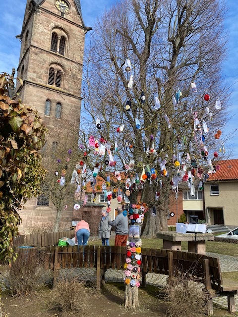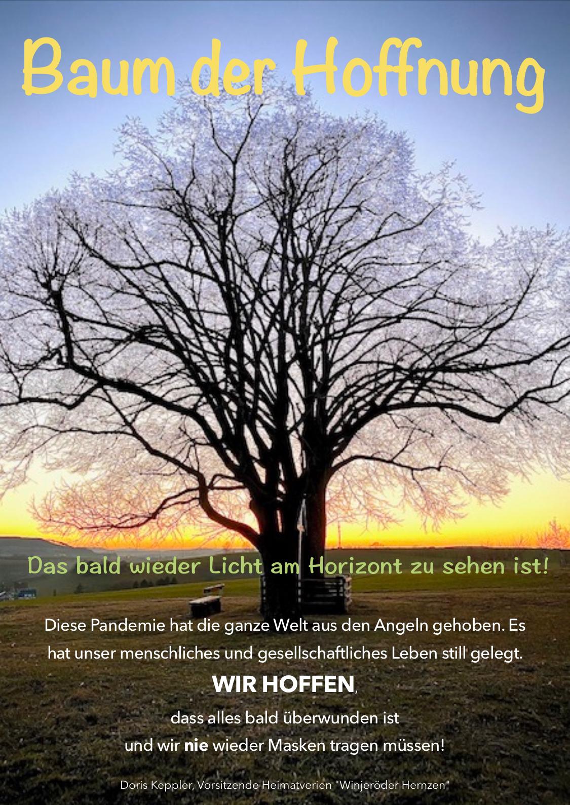 Eine weitere Aktion des Heimatvereins Wingerode war im Frühjahr „Der Baum der Hoffnung“, der mit über 300 in Handarbeit gefertigte Blüten von Rosi Bertold mit Hilfe der Vereinsmitglieder dekoriert wurde und auf die derzeitige Situation des Vereins aufmerksam machen sollte, aber auch gleichzeitig Hoffnung geben soll auf das Licht am Ende des Tunnels.