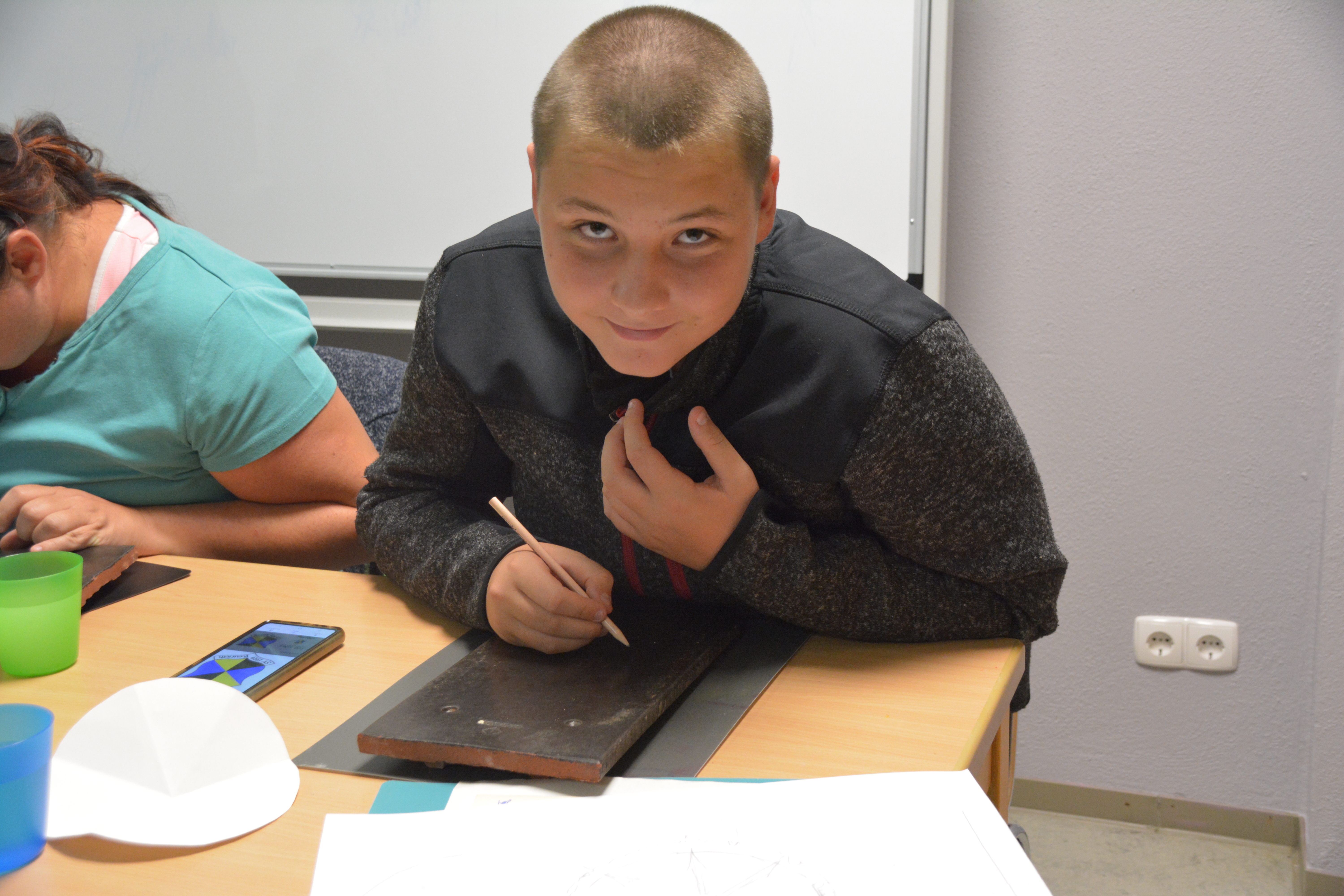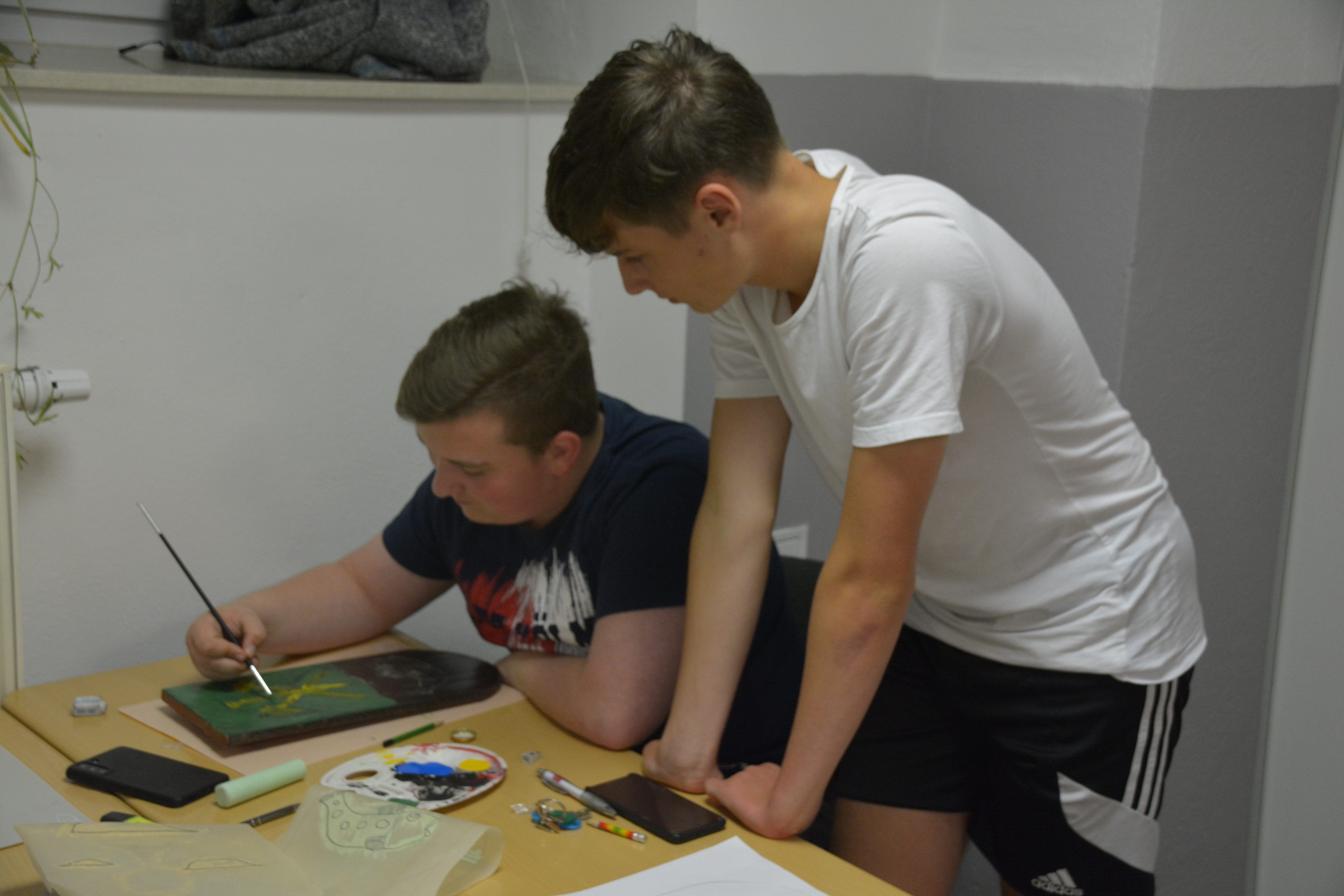Doch das Ferienprogramm bestand nicht allein aus Exkursionen, denn im Schullandheim führte Katrin Lange aus dem Altenburger Land eine Workshopreihe zu Wappen durch. Am Ende hatte jeder Teilnehmer eine bemalte Biberschwanzziegel im Gepäck, wobei die Kinder die „Wappen“ natürlich sehr frei umsetzten. Das Thema ist ausbaubar.