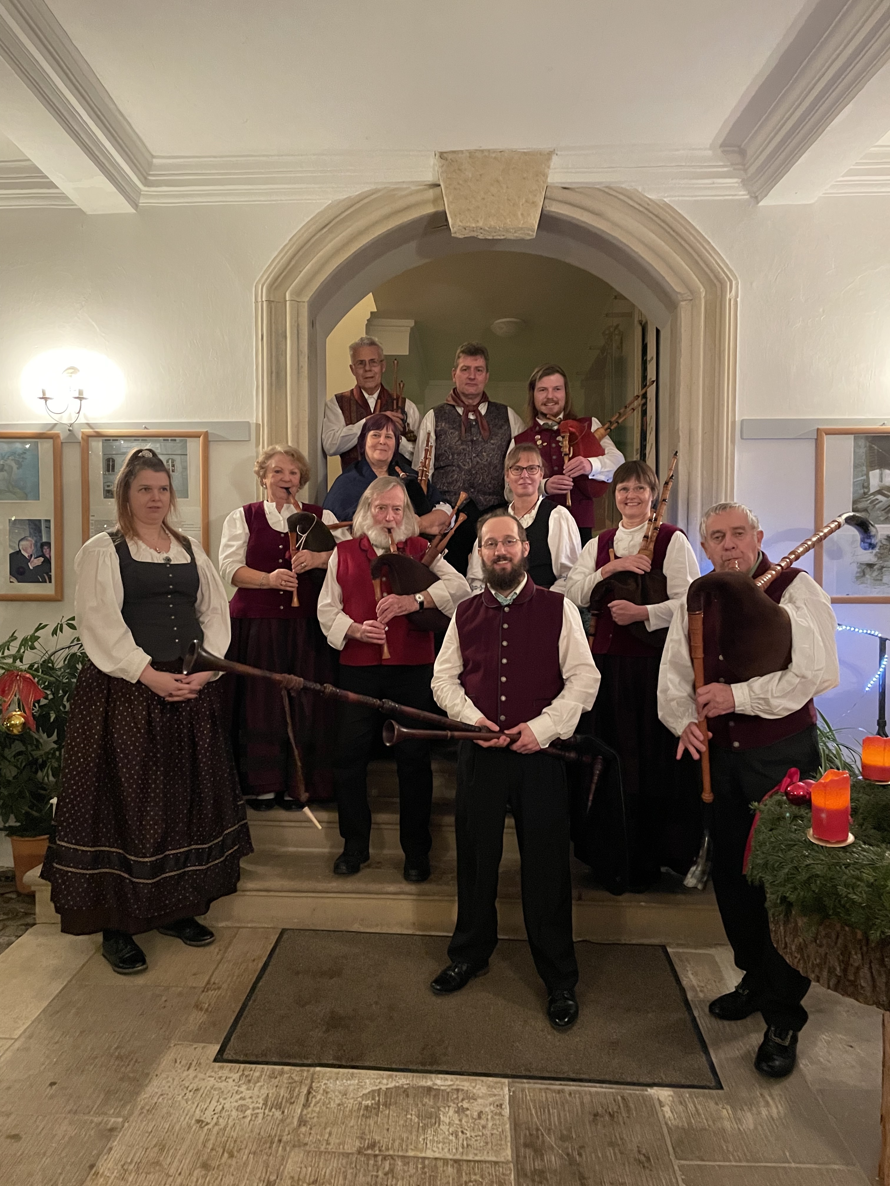 Das Landhaus Studnitz hat sich für die Dudelsackweihnacht herausgeputzt. Wenige Wochen zuvor begann der Kartenvorverkauf. Doch schneller als gedacht, waren die Karten für unsere beiden Vorstellungen zum 11. Weihnachtskonzert am 17. Dezember 2022 ausverkauft. Dies ließ unsere Herzen zwar höher schlagen, aber gleichzeitig rutschten sie uns auch gehörig in die Hose. Konnten wir nach so langer Zeit unser Publikum wieder begeistern und ein tolles Erlebnis schaffen? Dieser Gedanke spornte uns an. So suchten wir passende Musikstücke heraus. Probierten, probten und arrangierten. Jeder von uns steckte mit Herzblut seine Inspirationen, Ideen und seine Seele mit hinein.
