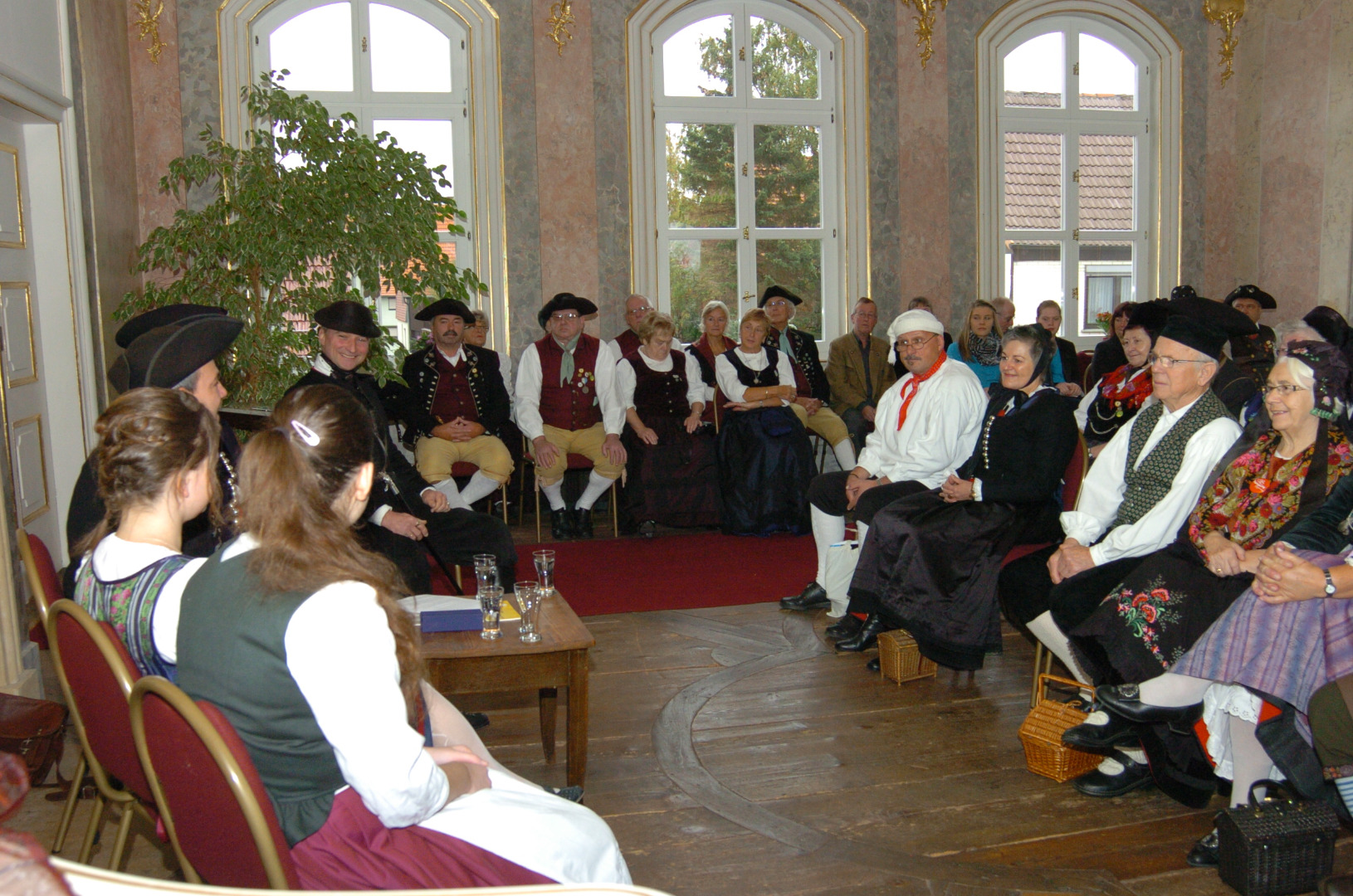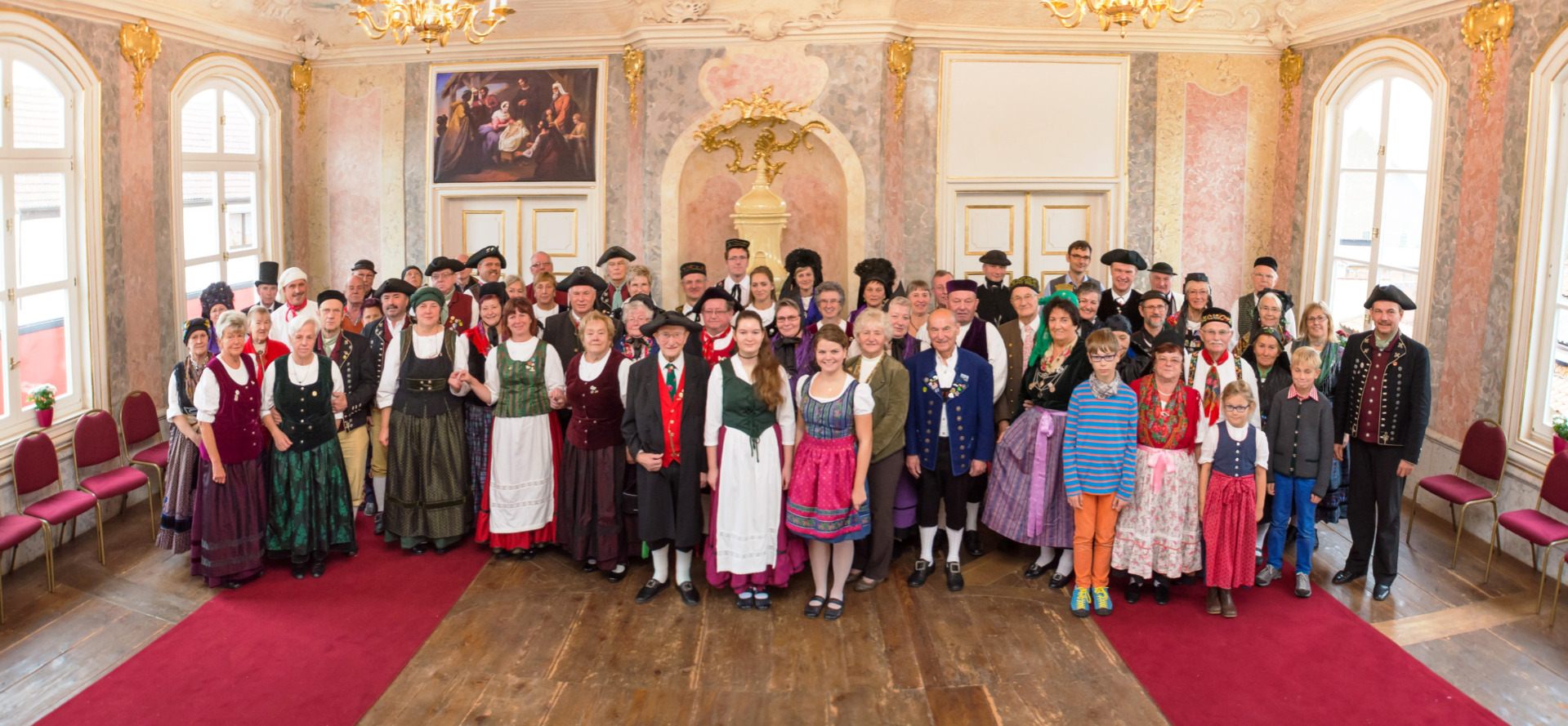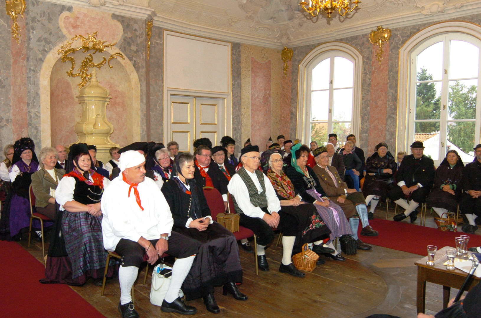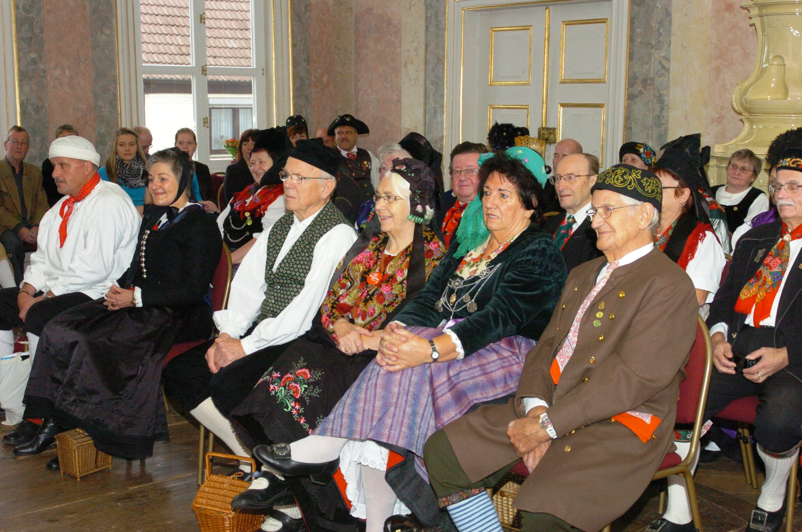 Der Thüringer Landestrachtenverband e.V. versammelte am Sonntag, den 18. Oktober 2015 mehr als siebzig Trachtenträgerinnen und Trachtenträger aus ganz Thüringen, um mit einer Podiumsdiskussion am bundesweiten „Tag der Tracht“ teilzunehmen. Mit einem prallgefüllten Rokokosaal des Landhauses Studnitz gab der größte Verband der Heimatpflege im Freistaat den Startschuss für eine Vielzahl verschiedenster Veranstaltungen im Bundesland. Vor etwa zehn Jahren hatte der Deutsche Trachtenverband diesen Ehrentag für das ländliche Gewand ins Leben gerufen, um der Tracht eine breite Aufmerksamkeit in der Öffentlichkeit zu schenken.