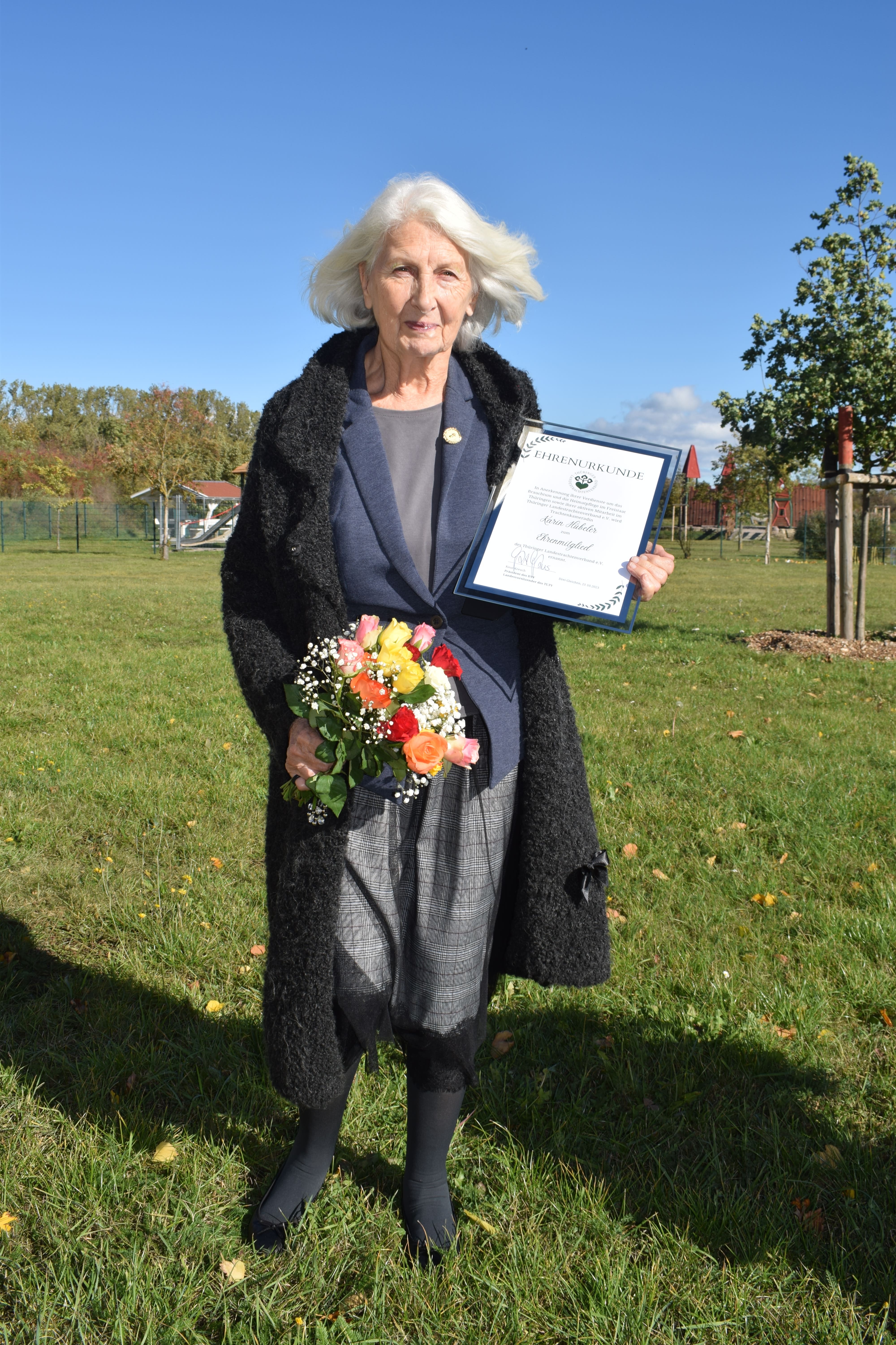 Den krönenden Abschluss der Landesversammlung bildete die Auszeichnung unseres langjährigen Mitglieds Karin Hübeler aus Erfurt, als Ehrenmitglied. Sie ist bereits viele Jahre im Trachtenverband aktiv. Viele kennen die Künstlerin sicherlich durch ihre einmaligen aus Holz geschnitzten Trachtenfiguren.