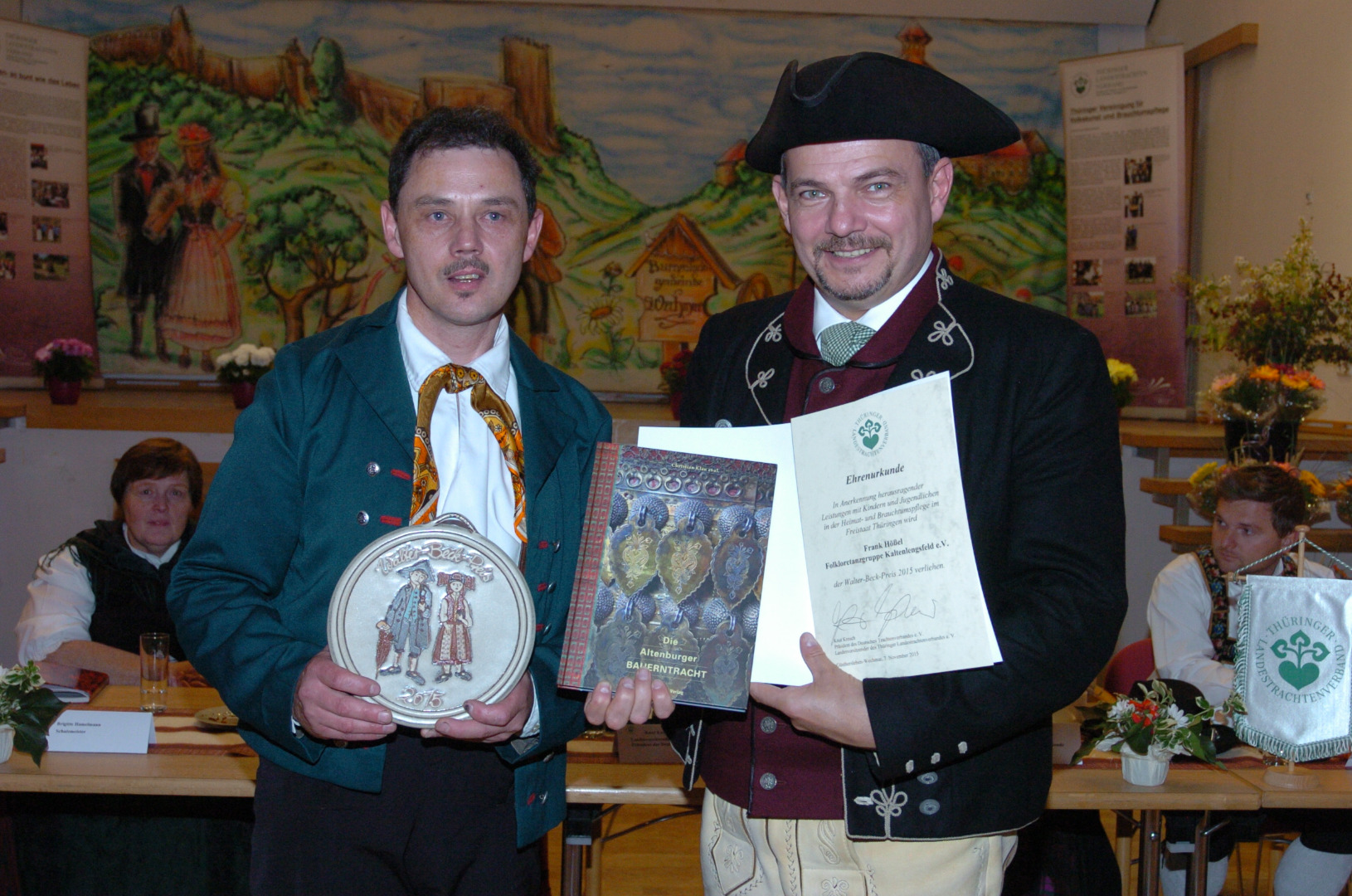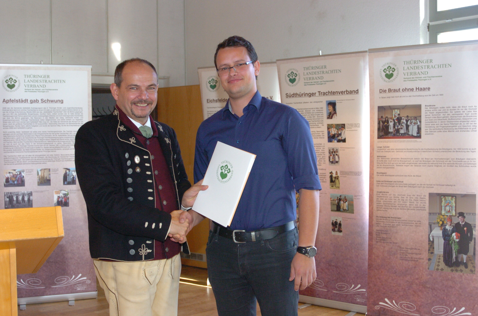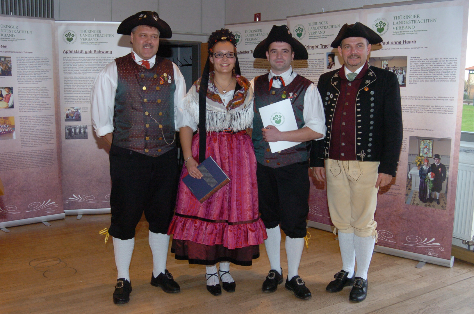 Vom Verein der Thüringer Trachtengruppe der Sieben Täler aus Tambach-Dietharz kommt das erstmals gekürte „Thüringer Trachtenpaar“. Es sind Sophia und Christian Jäger. Der Thüringer Landestrachtenverband will damit den Beweis antreten, was Thüringer Lebenskultur ist. Thüringen ist nicht nur Bratwurst und Kloß, sondern vor allem Tracht. Knut Kreuch will mit seinem Thüringer Trachtenpaar zur Europeade im belgischen Namur, auf vielen Trachtenfesten, beim Deutschen Trachtenfest in Öhringen für die Trachtenkultur in Thüringen werben.