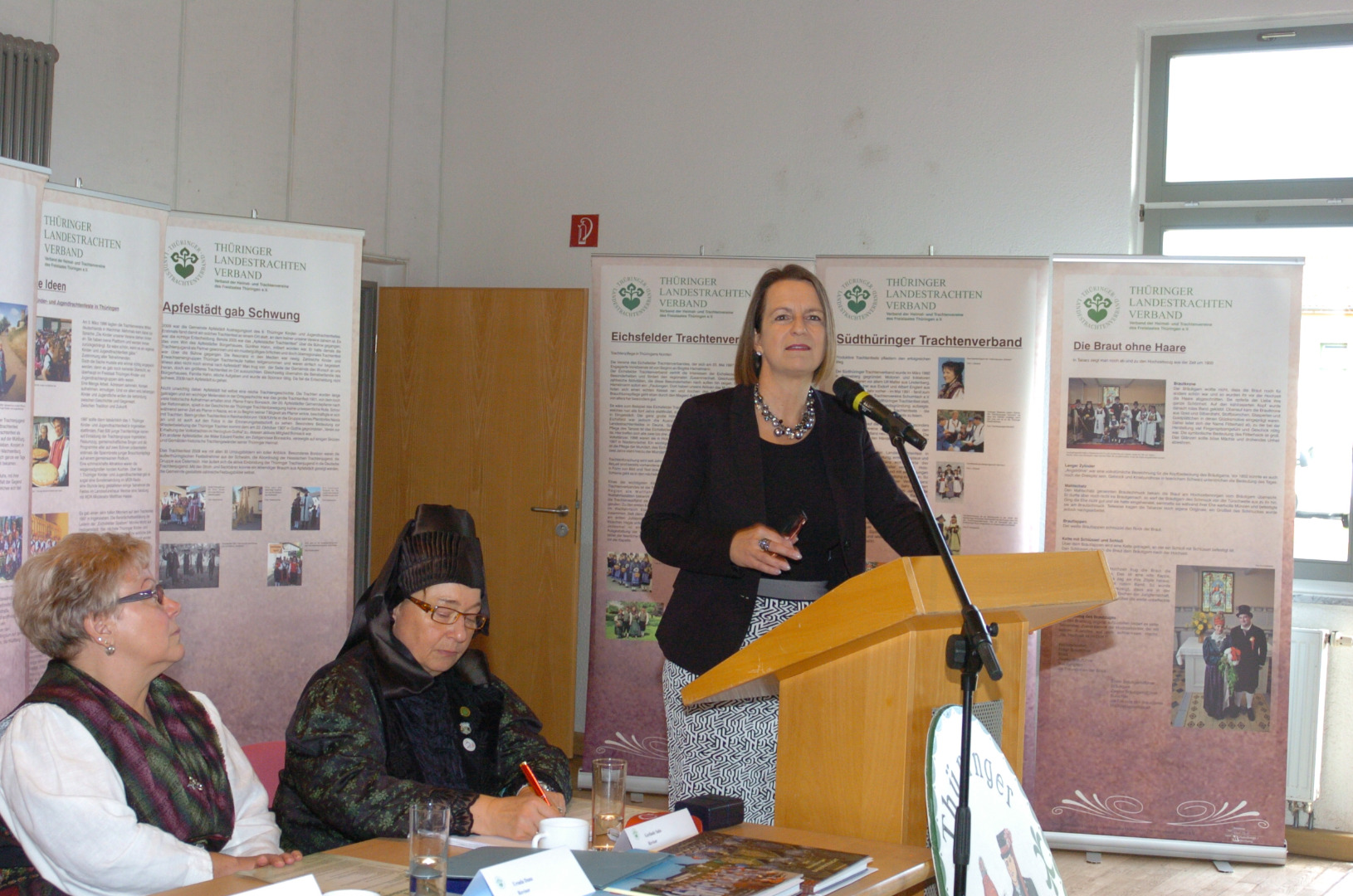 Kaum zu glauben, die von vielen immer wieder totgesagte Liebe zu Heimat und Tracht erlebt in Thüringen einen wahren Boom. Seit achtzehn Jahren vertritt der Thüringer Landestrachtenverband e.V. die Interessen von rund fünftausend Trachtenträgern zwischen Harz und Sonneberger Land und zwischen Ruhla und Altenburg. Landesverbandsvorsitzender Knut Kreuch, Oberbürgermeister der Residenzstadt Gotha, konnte auf der Landesversammlung am 7. November 2015 im Bürgerhaus Günthersleben-Wechmar eine stolze Bilanz ziehen. Fünftausend Menschen in rund einhundert verschiedenen Trachten, leben ihr Hobby in dreihundert Gruppen, die sich zu 95 Vereinen zusammengeschlossen haben. Mitglieder des Thüringer Landestrachtenverbandes tragen nicht nur Tracht, sie schwatzen Mundart, sie schweben im Volkstanz über die Tenne, singen bei jeder Gelegenheit die typischen Volkslieder, schwingen Fahnen, musizieren auf traditionellen Instrumenten wie Dudelsack, Schalmei, Hirtenhorn oder Maultrommel und erhalten typische Bräuche ihrer Regionen.