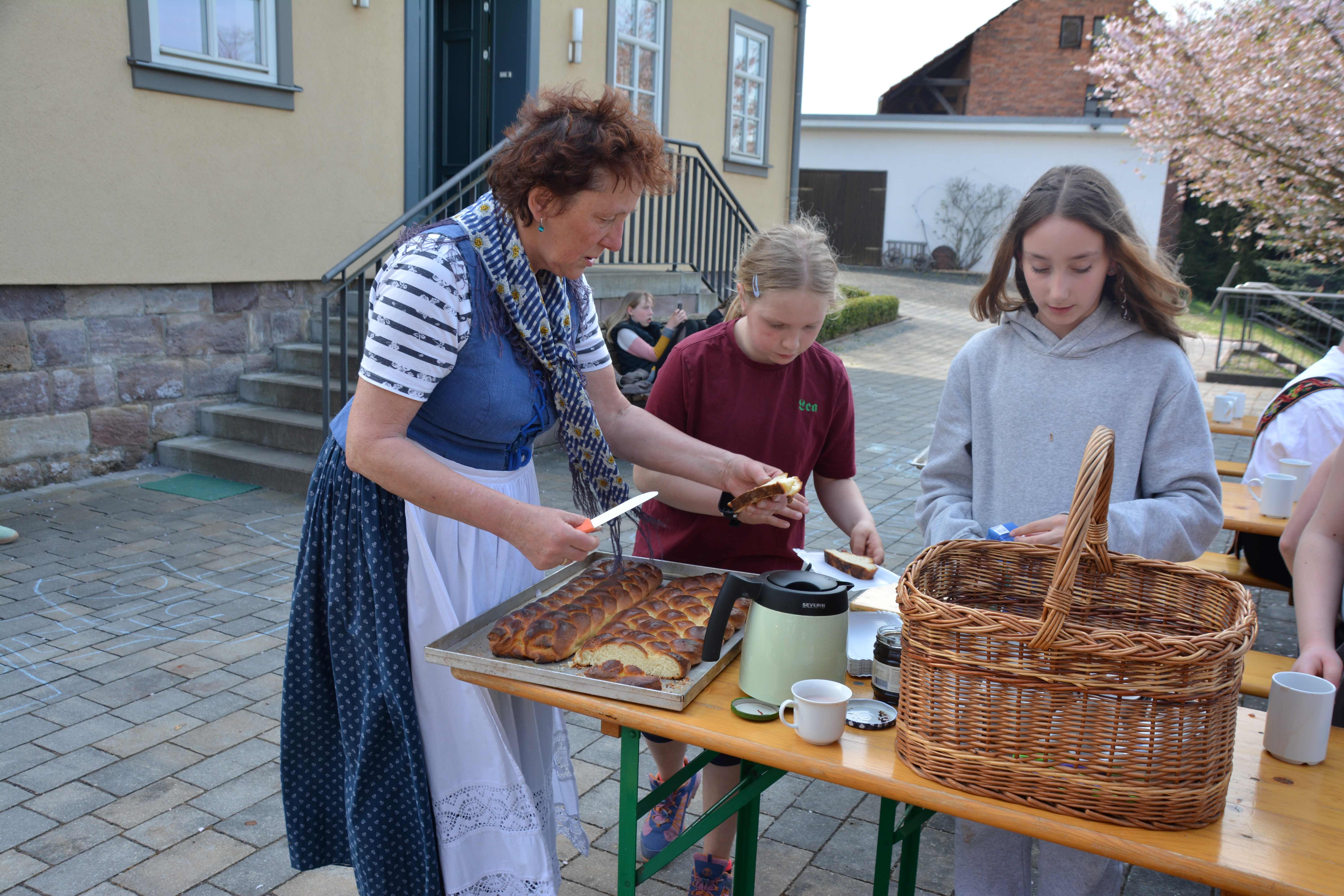Ein großes Dankeschön geht an die Teams des Trachtenvereins Tabarz und der Schönauer Backfrauen, die uns vor Ort in ihren Räumlichkeiten bewirtet haben und uns ihre Arbeit zeigten. Wir konnten einen tollen Einblick in das Wirken beider Vereine nehmen. Dank gilt allen engagierten Erwachsenen und den Kindern und Jugendlichen der Osterferienaktion 2025. Selbstversorgung wird immer zur Herausforderung, die wir gemeinsam gemeistert haben. Mit dem Landgut Engelsbach hatten wir eine tolle Herberge gewählt, und nicht nur Jürgen freute sich über den 250 Quadratmeter großen Tanzsaal mit Parkett. Die Resultate der Osterferienaktion werden sich am Kalender für 2026 zeigen, der im Frühsommer 2025 erscheinen soll.