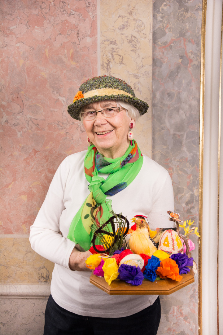 Gut behütet kam Karin Schneider jüngst nach Wechmar zum diesjährigen Binseneierseminar, das sie nun bereits zum 11. Male leitete. Es ist der Renner unter den Bildungsveranstaltungen des Thüringer Landestrachtenverbande