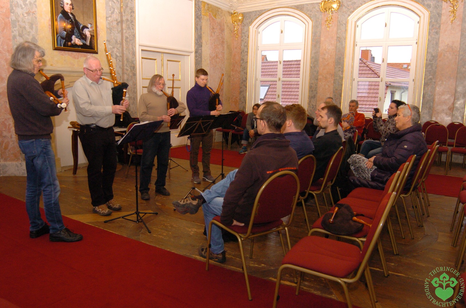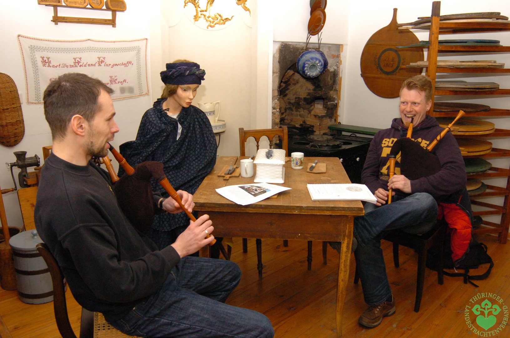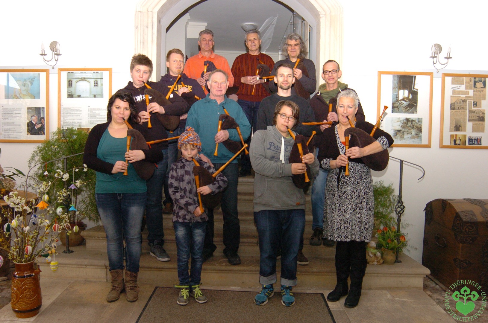 Der Thüringer Landestrachtenverband ist seit seiner Gründung 1997 bemüht eine Musikgruppe mit historischen Instrumenten aufzubauen. Im Jahr 2008 war es uns gelungen mit Hilfe von Dr. Harro Frels, Mitglied im Wechmarer Heimatverein und leidenschaftlicher Dudelsackspieler, eine Dudelsackgruppe zu gründen, die sich unter den „Wechmarer Mühlenpfeiffern“ bereits über Thüringens Grenzen hinaus einen Namen gemacht hat.