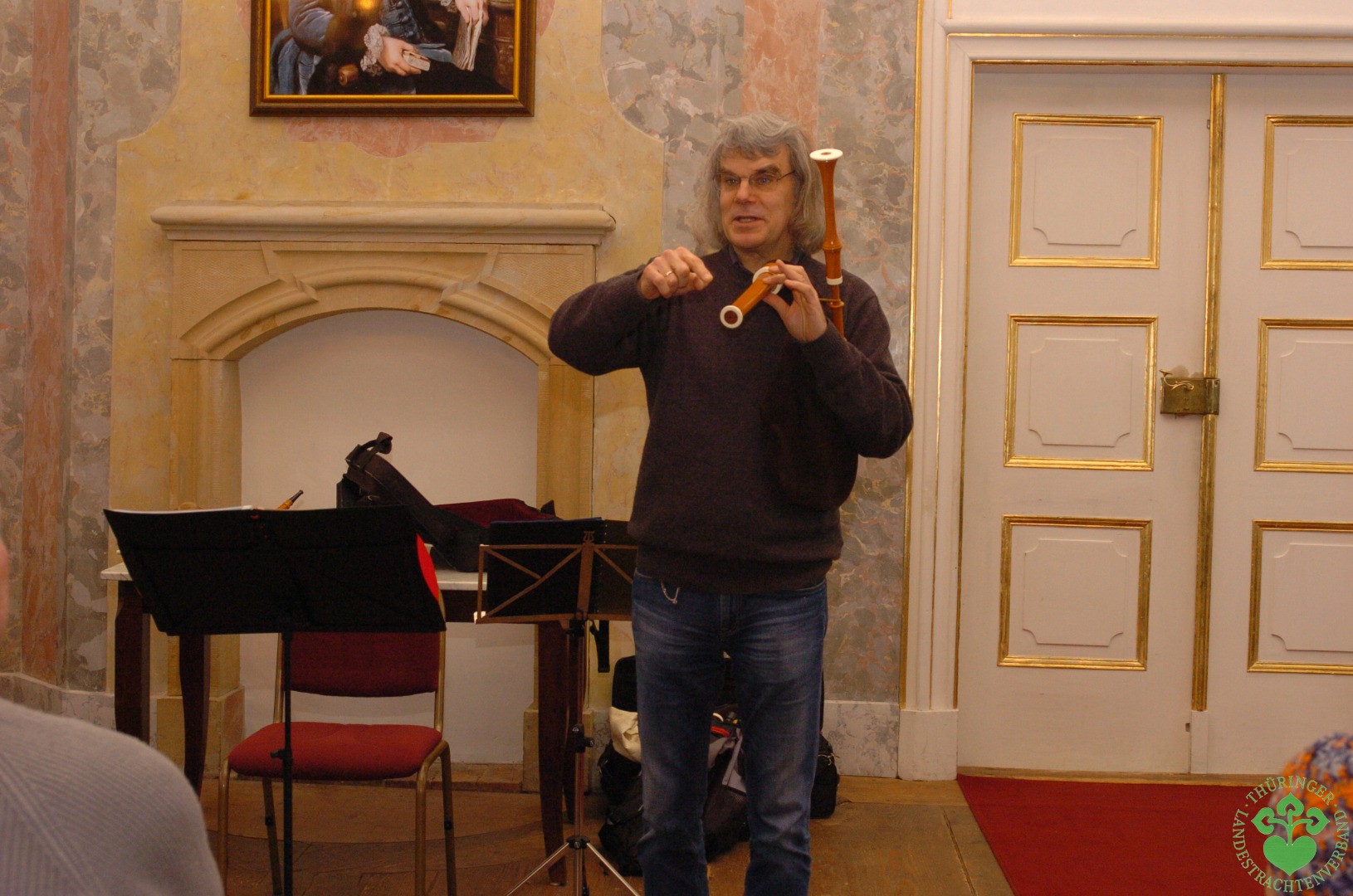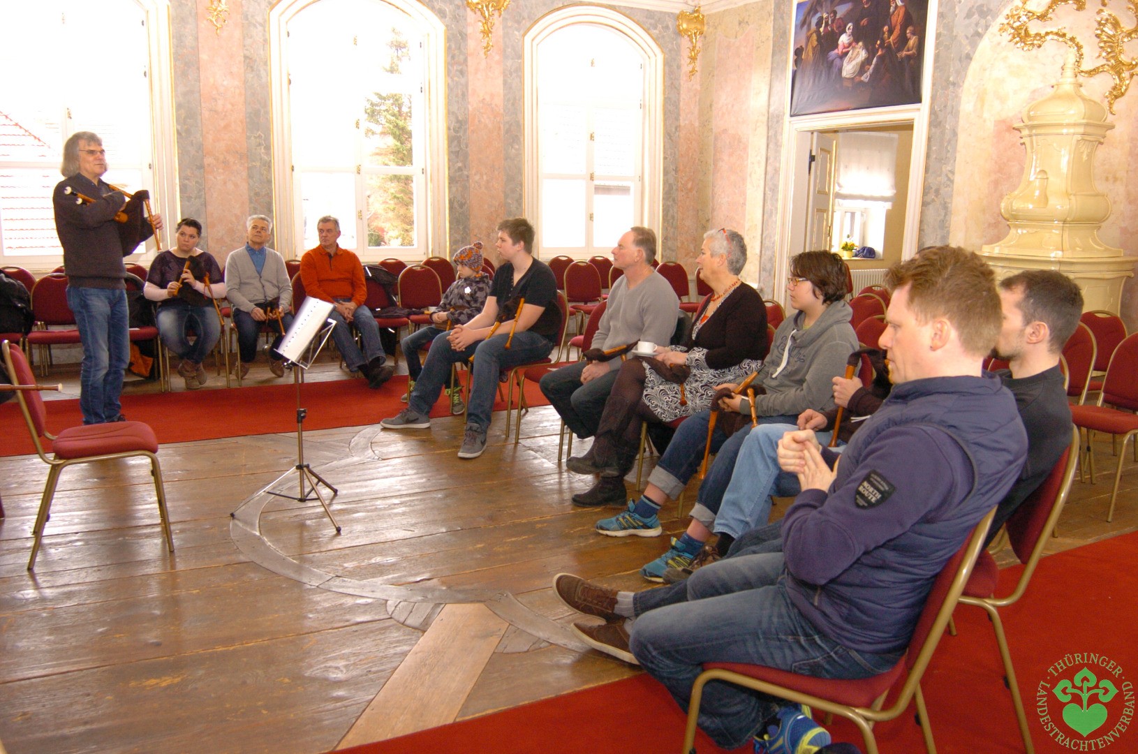 Elf interessierte Teilnehmer kamen am Wochenende aus Gotha, Großfahner, Suhl, Henningsleben, Wandersleben, Suhl, aus dem südthüringischen Reurieth bei Hildburghausen und sogar aus Ingolstadt zusammen, um mehr über den Dudelsack zu erfahren und vor allem um das Musizieren auf diesem Instrument zu erlernen. Der jüngste Teilnehmer war mit neun Jahren Leonard Six aus Reurieth und er ließ sich trotz einer Erkältung nicht davon abbringen, den Dudelsack ein paar musikalische Töne zu entlocken, was ihm auch hervorragend gelang. Auch wenn aller Anfang schwer ist, wie es so schön heißt, waren doch alle mit großem Ehrgeiz dabei und jeder hörte voller Konzentration auf die Erläuterungen des Seminarleiters Friedhelm Capelle, der sehr geduldig auf alle Fragen eine Antwort hatte.