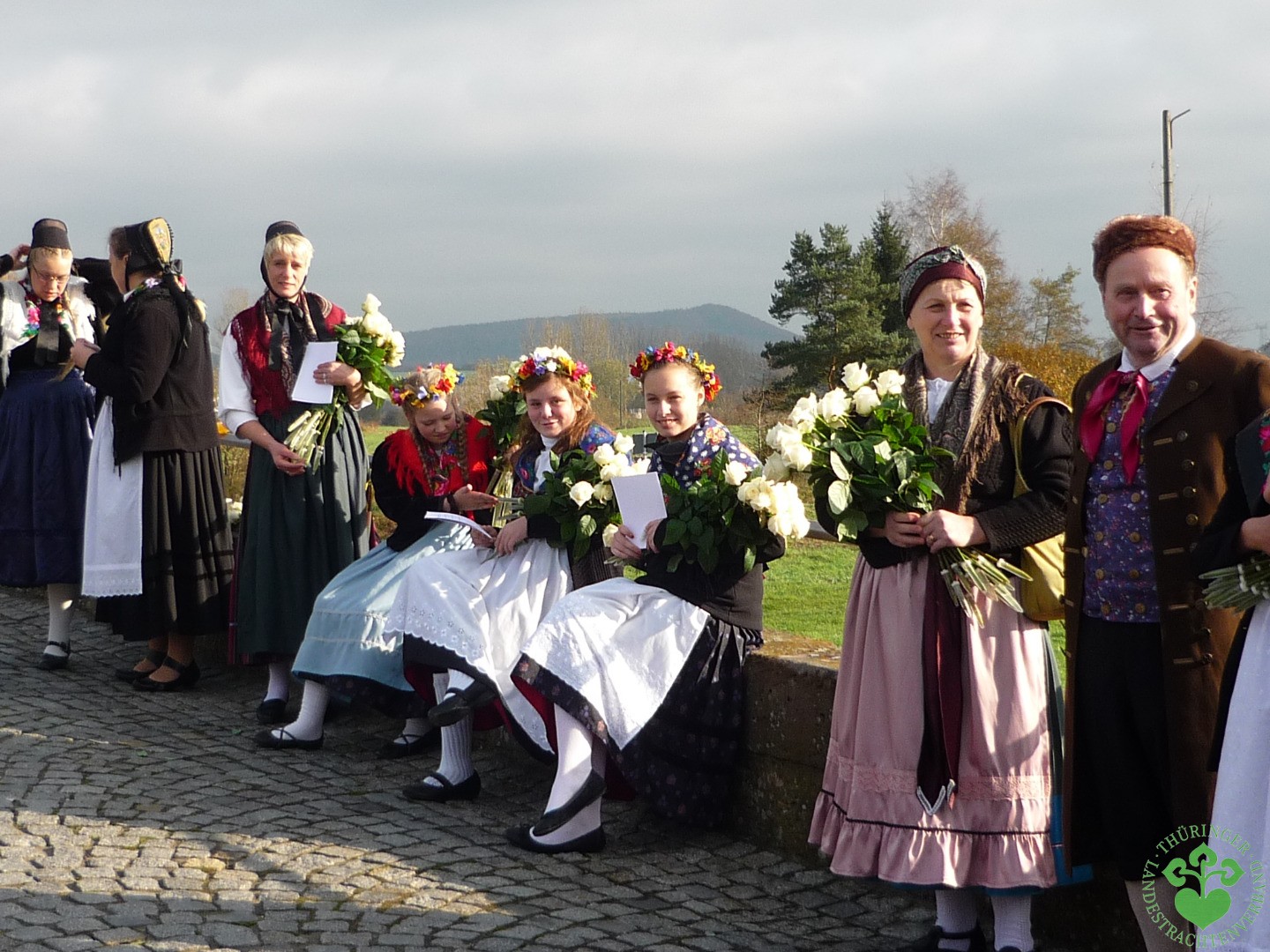 Brücke und führte von Frankfurt nach Leipzig. Schon damals bewegten sich hier Menschenströme und die Brücke hat die Welt verbunden.Ich glaube aber, so viele fröhliche und besinnliche Menschen wie am 9. November 2014 hat die Brücke in ihrer langen Geschichte noch nicht erlebt!“ Die abschliessenden Worte der Thüringer Ministerpräsidentin Christine Lieberknecht blieben nicht nur den Thüringer Trachtenleuten im Gedächtnis. Sie sagte: „Auch nach 25 Jahren ist es unsere Pflicht, uns auf die Werte, die die friedliche Revolution auf beiden Seiten der Mauer getragen haben, zu besinnen und ihnen einen festen Platz in den Visionen für die Zukunft einzuräumen. Nur wer die Geschichte annimmt und versteht, kann Zukunft in Frieden und Freiheit gestalten.“ Der Thüringer Trachtenverband wird das auch in der Zukunft tun. Die Trachtenträger bedanken sich bei den Ausrichtern des Festes und freuen sich, das so viele Menschen 25 Jahre nach der Grenzöffnung den Mauerfall zu würdigen wissen.
