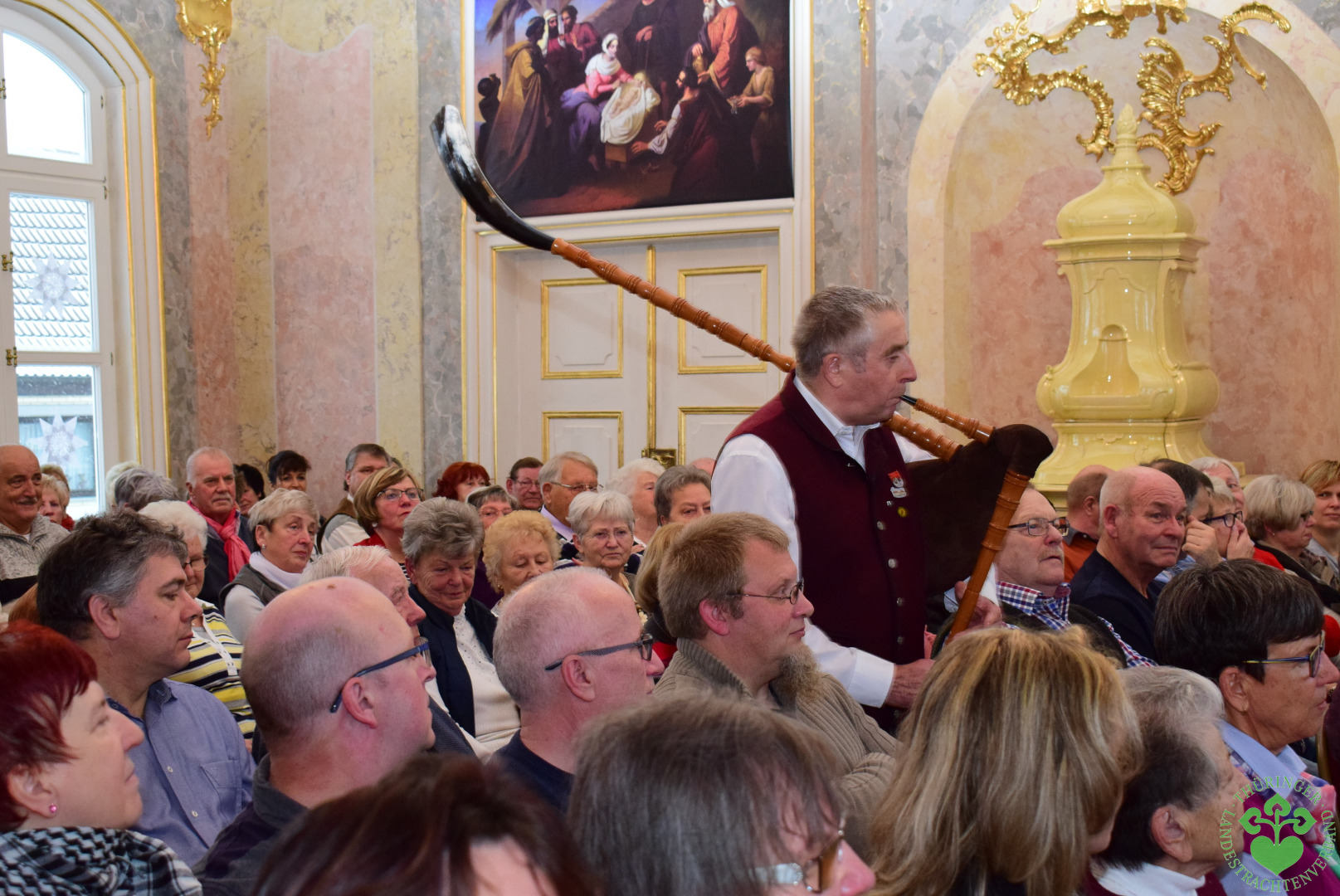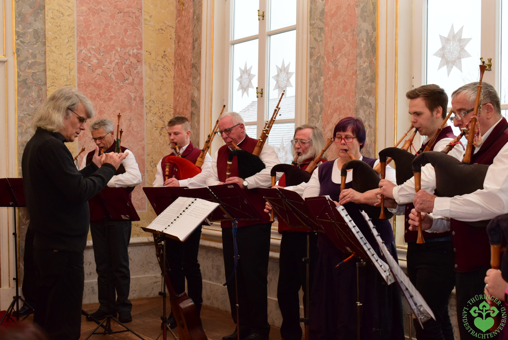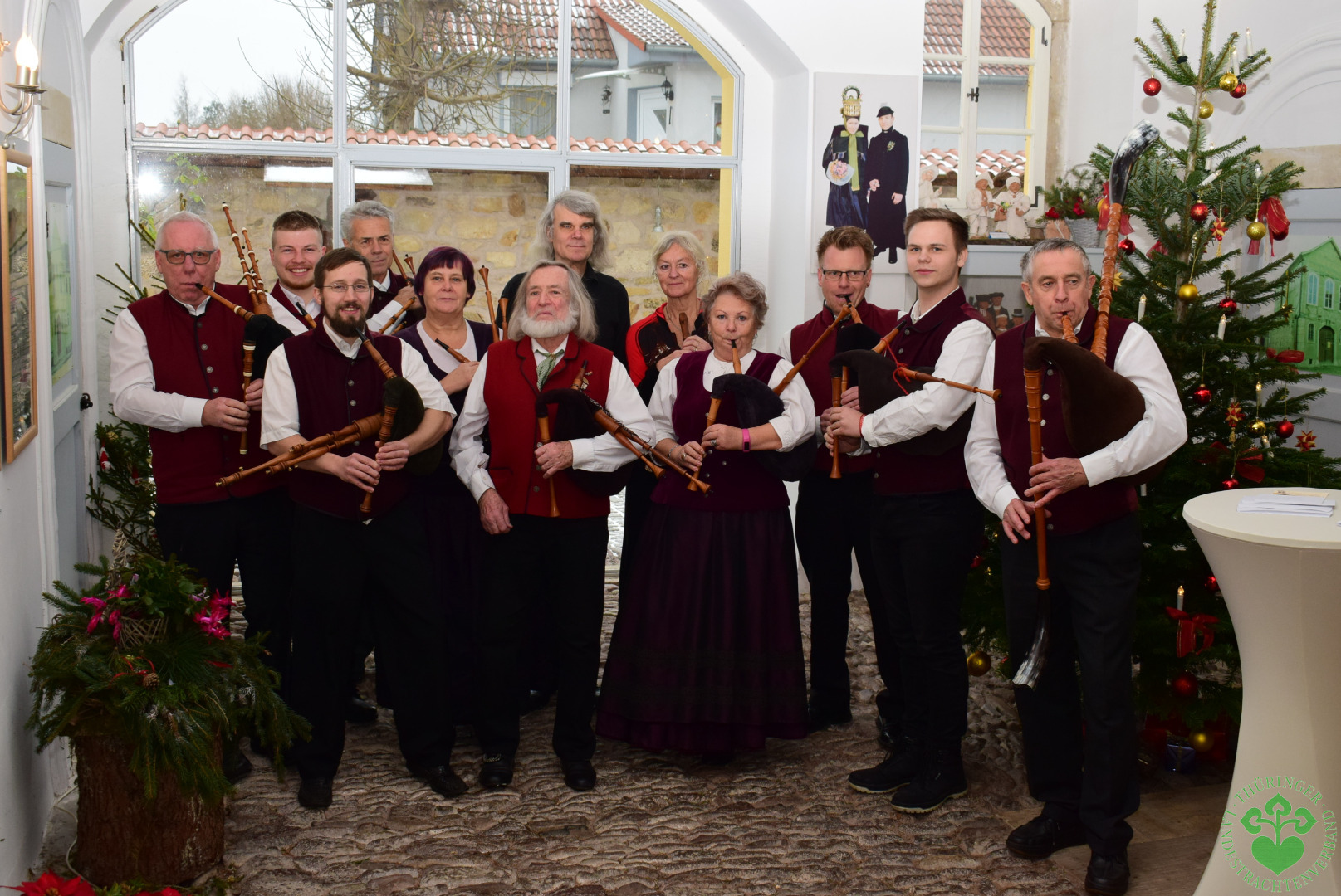 Bach-Stammort Wechmar: Im ausverkauften Rokokosaal des Landhauses war die tobende Begeisterung des Publikums spürbar, als die Wechmarer Mühlenpfeiffer zu ihrer traditionellen Thüringer Dudelsackweihnacht anstimmten. Ohne drei Zugaben ging das Konzert am 2.Advent nicht zu Ende. Die 2008 gegründete Gruppe mit ihrem musikalischen Lehrmeister Friedhelm Capelle geht somit gestärkt ins Jubiläumsjahr, denn 2018 wollen die Mühlenpfeiffer mit einem großen Konzert im Ekhoftheater zu Gotha ihr Jubiläum einläuten, bevor im Herbst die 1.Thüringer Stadtpfeiffertage auf dem Programm stehen. Und, die Gruppe wächst, denn mit Gunnar aus Suhl, Rita aus Wechmar, Daniel aus Arnstadt und Bastian aus Leina konnte Präsident Romeo Kreuch gleich vier neue Mitglieder begrüßen, so dass die Mühlenpfeiffer nun aus 13 spiel- und sangesfreudigen Mitgliedern bestehen. Wer Lust hat, kann jeden Montag zur Probe ins Landhaus Studnitz kommen.