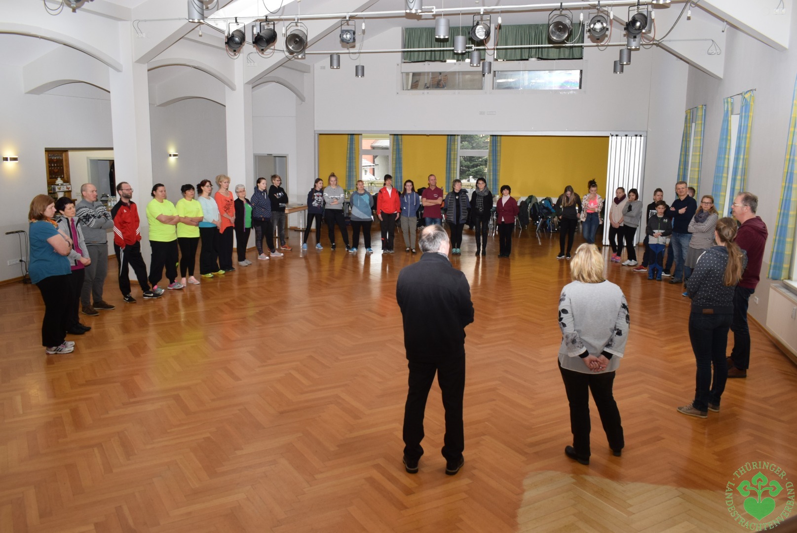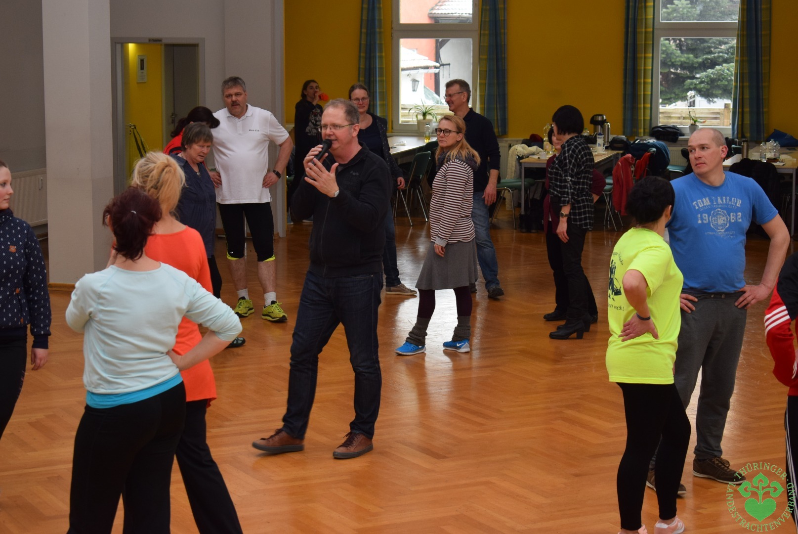 32 Teilnehmer trafen sich am Samstag, den 3. März 2018 im Gemeindesaal Wechmar, um gemeinsam die verschiedensten Varianten des Quadrilletanzes einzustudieren und alle, vom 12jährigen Tänzer bis zur 76jährigen Tänzerin waren mit Begeisterung dabei. Keine leichte Aufgabe für Christian Lantau und seine Frau, aber sie nahmen die Herausforderung an und waren voll des Lobes über die Konzentration und Kondition der Teilnehmer, so dass am Ende nicht nur dem Tanzleiter ein zufriedenes Lächeln im Gesicht stand, sondern auch den Tänzern die Freude über ein sehr erfolgreiches Tanzseminar anzusehen war. Ein herzliches Dankeschön gehen an Gesa und Christian Lantau für die Tanzanleitungen und nicht zu vergessen an die Musiker Tanja Opp und Christopher Luckhardt, denn was wäre eine Quadrille ohne Livemusik und die Beiden haben das hervorragend gemeistert.