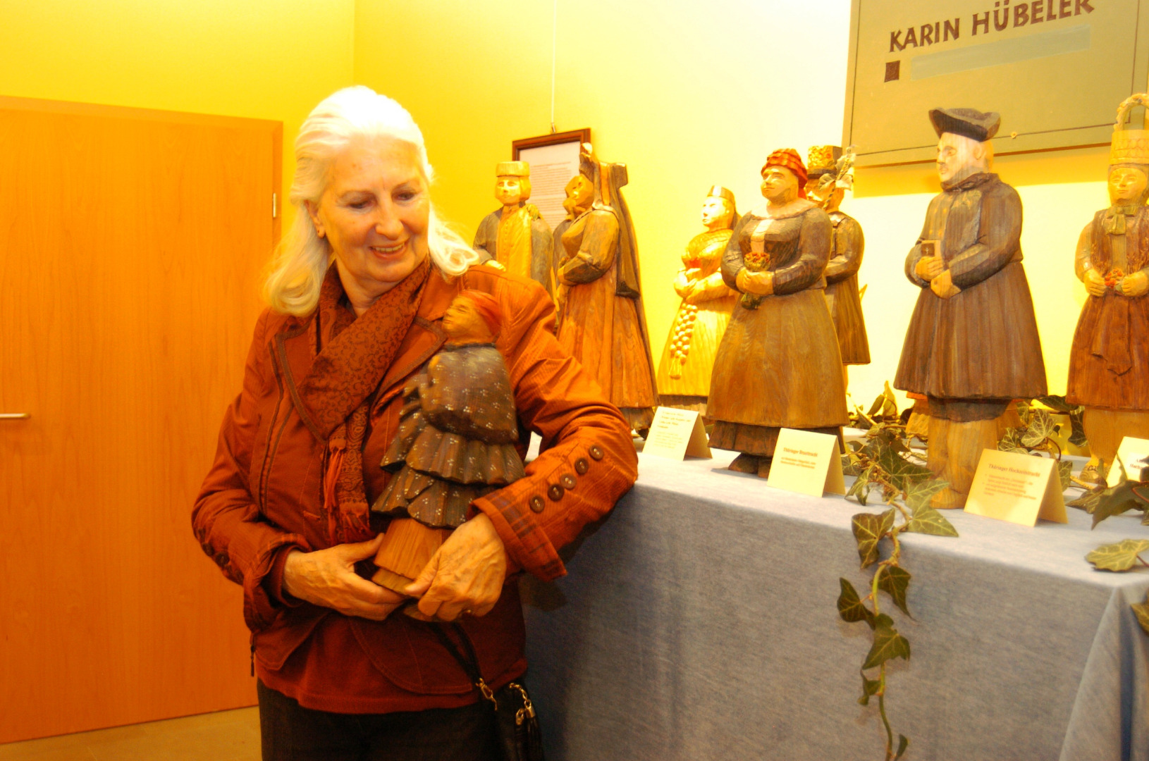 Doch eine Fotoreportage die reicht in Wechmar lange nicht aus. Karin Hübeler, eine der letzten Thüringer Holzschnitzkünstlerinnen, beweist, wie es gelingen kann, dass ein Thüringer Fichtenholzstamm in eine Tracht schlüpft. Sie hat elf typische Thüringer Trachtenfiguren gefertigt und damit bewiesen, dass in Holz brennende Trachtenideen entstehen können. Besonders sehenswert in der Ausstellung ist eine Exposition aus Ernstroda, dem schönen Stadtteil des Bergstädtchens Friedrichroda. Elke Simmen hat in jahrelanger Kleinarbeit Porzellankörper in Trachten schlüpfen lassen und so entstand eine umfassende Puppen-Kollektion, die ganz in der Tradition der unvergessenen Helma Ullrich steht, die bis Mitte des 20.Jahrhunderts Trachtenpuppen fertigte. Unter der Leitung der Vorsitzenden des Eichsfelder Trachtenverbandes,Brigitte Hamelmann aus Holungen, wurden vor einigen Jahren in einer Arbeitsgruppe Trachtenpuppen gefertigt, die erstmals in einer Ausstellung des Thüringer Landestrachtenverbandes in Wechmar gezeigt werden und fast die gesamte Eichsfelder Trachtenlandschaft in Miniatur darstellt.