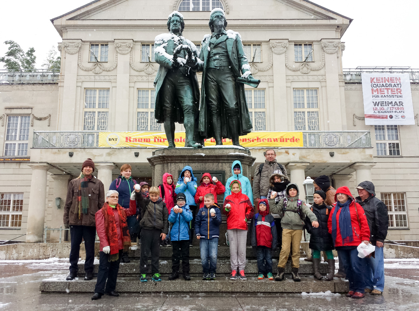 Was für Frechlinge! Na ja, der erste Schnee gehörte eben zur diesjährigen Oktoberferienaktion, ebenso wie auf Goethes und Schillers Fersen unterwegs zu sein.