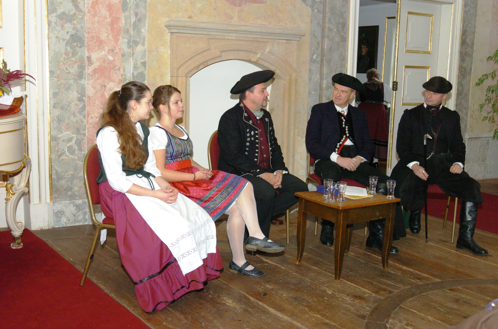 Landesvorsitzender Knut Kreuch hatte sich deshalb hochkarätige Gesprächspartner eingeladen, so den bekennenden Trachtenträger, Werbefachmann, Journalisten, Musikant bei den „Stäfflesgeigern“, aktiven Fastnachter, Organisator des Cannstatter Volksfestumzuges und populären SWR-Moderator, Wulf Wager. Mit dem Humanmediziner und Gymnasiallehrer, Dr. Christian Klau aus dem Altenburger Land, saß in der Gesprächsrunde ein Mann, der mit Haus und Hof, mit Frau und Kindern, mit Landschaft und Natur seine Traditionen in Tracht auslebt. Für Johanna Schack und Natalie Kreuch war der Tag eine Premiere, erstmals saßen zwei junge Tänzerinnen auf dem Podium, die über ihren Weg zur Tracht und die Schwierigkeiten im Alltag berichteten.