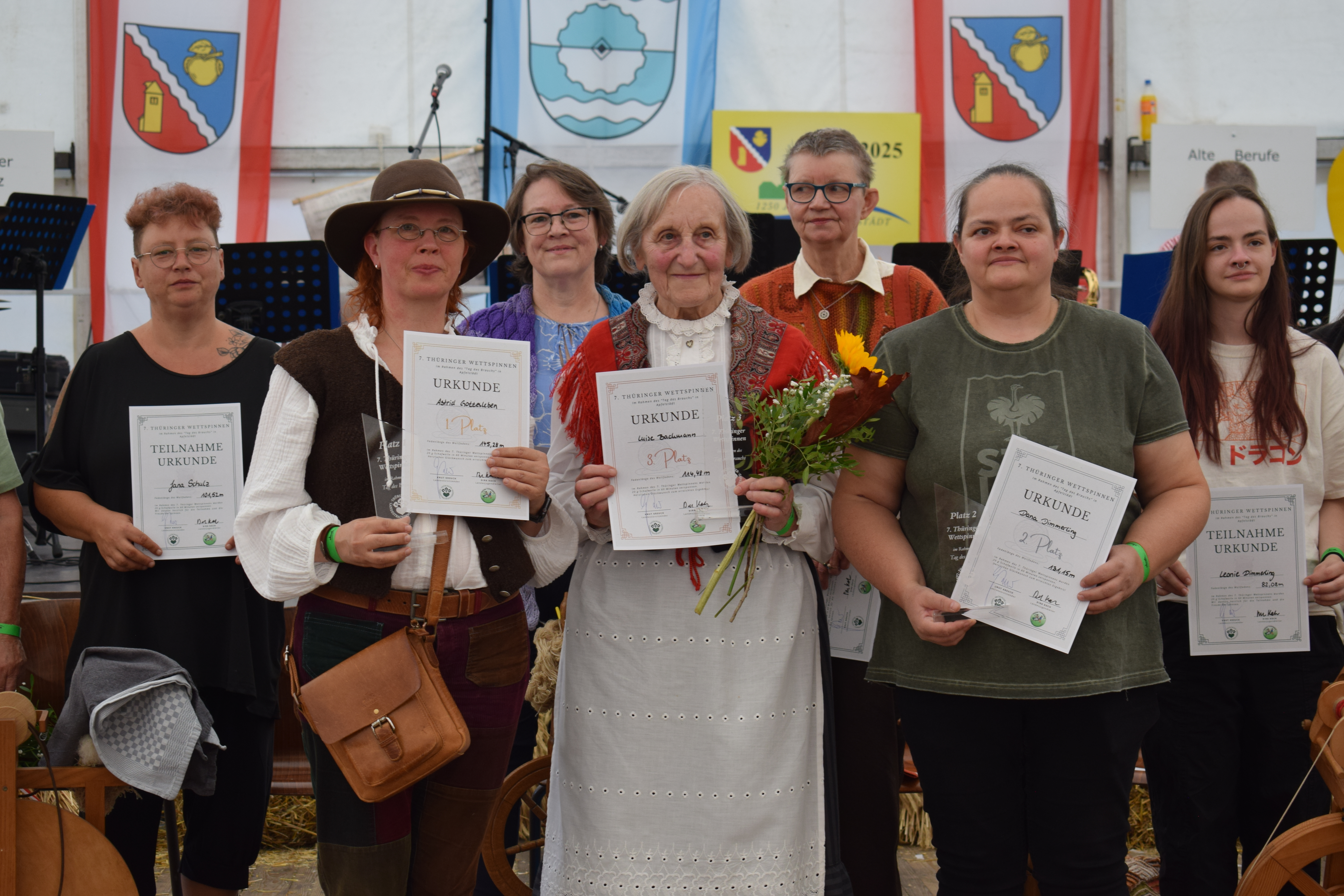Das 7. Thüringer Wettspinnen in Apfelstädt war nicht nur ein spannender Wettbewerb, sondern auch ein lebendiger Tag der Begegnung. Es verband Generationen – von der jüngsten Teilnehmerin mit 22 Jahren bis zur ältesten mit 88 Jahren – und zeigte eindrucksvoll, wie Tradition durch gemeinsames Erleben lebendig bleibt.
