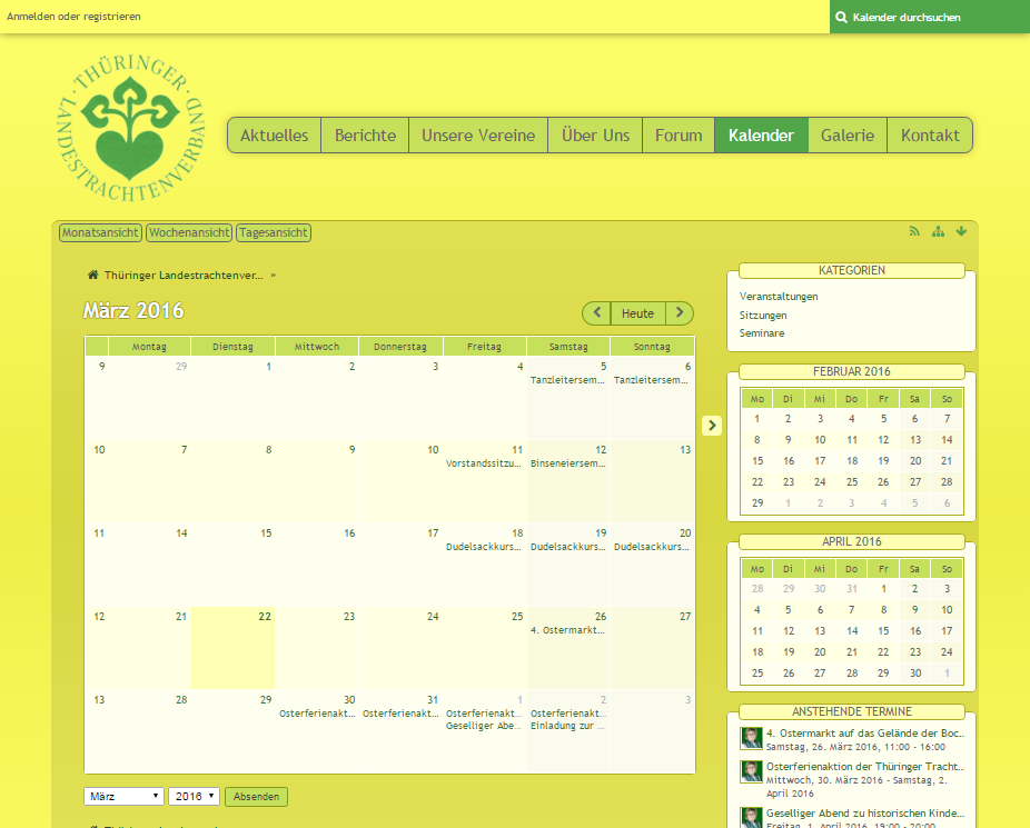 Bereits auf der Startseite könnt Ihr einen Überblick über die neusten Artikel und anstehenden Termine erhalten.