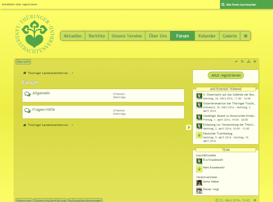 Neu ist der Reiter „Forum“. Alle interessierten können sich nun auf der Internetseite des Thüringer Landestrachtenverband e.V. registrieren, mitdiskutieren und neue Diskussionen anstoßen.