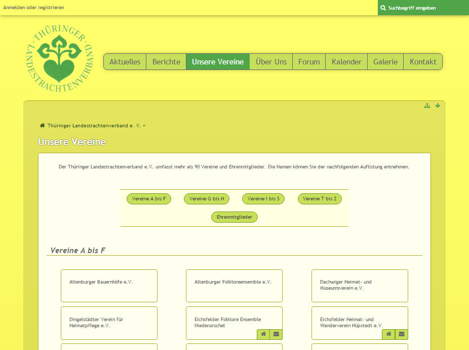 Neben der Auflistung „Unserer Vereine", sind bereits einige Vereinsseiten entstanden und im Reiter „Über uns“ könnt Ihr euch über den Verband wie auch die Thüringer Trachtenjugend informieren.
